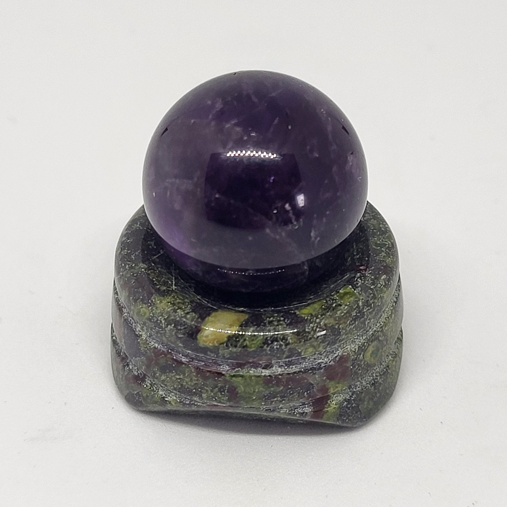 This Blood Jasper sphere stand is the perfect complement to your collection. It is thought Dragon Blood invites an energetic boost to enhance personal power. It is sourced from top producers in the United States, Madagascar, Russia, Brazil, and India for the highest quality and awakening of kundalini energy.