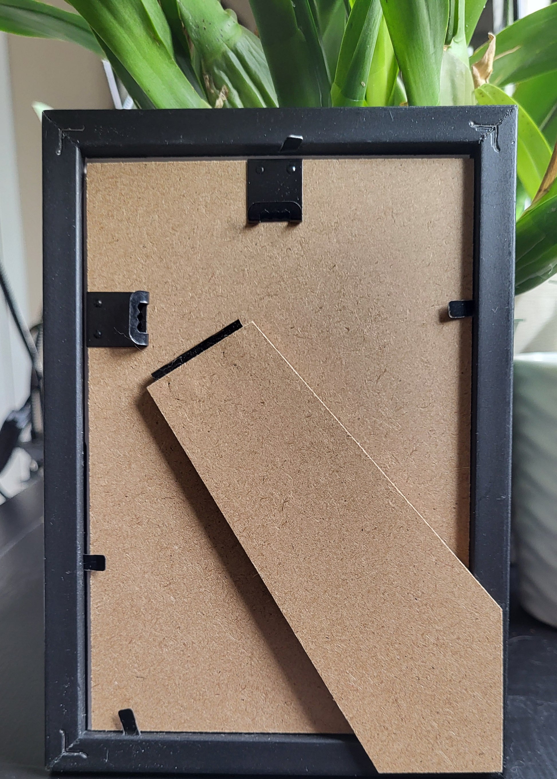 This unique frame is crafted with glass and 65 pound cardstock paper which is durable and flexible. It measures 15.2cm X 10.2cm (4"X6"). Click on the picture frame to zoom into the text.