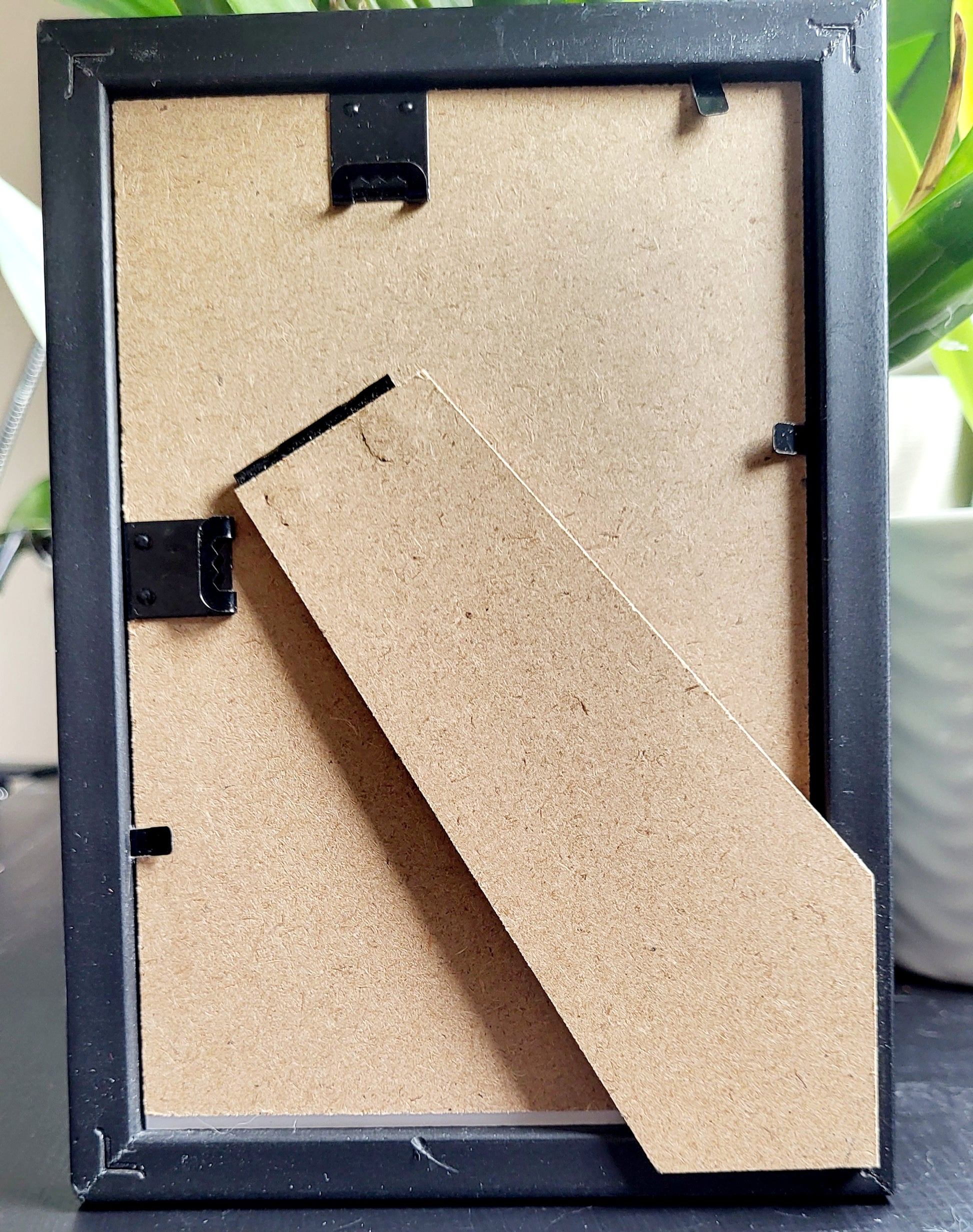 This unique frame is crafted with glass and 65 pound cardstock paper which is durable and flexible. It measures 15.2cm X 10.2cm (4"X6"). Click on the picture frame to zoom in.