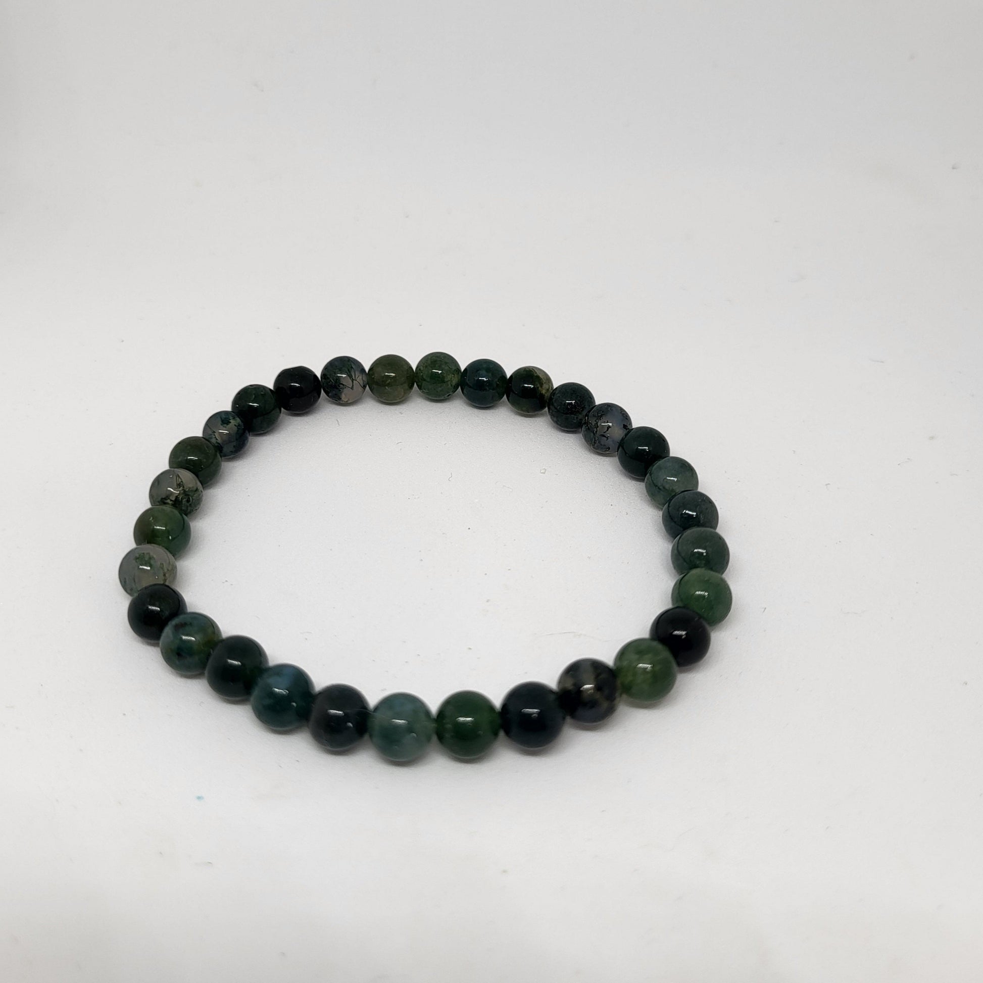 This 6mm bracelet is perfect for those who appreciate green or a combination of green and black. Moss agate is known for its ability to provide emotional stability and tranquility, making it ideal for easing anxiety, stress, and mood swings. This crystal promotes a peaceful and balanced state of mind.